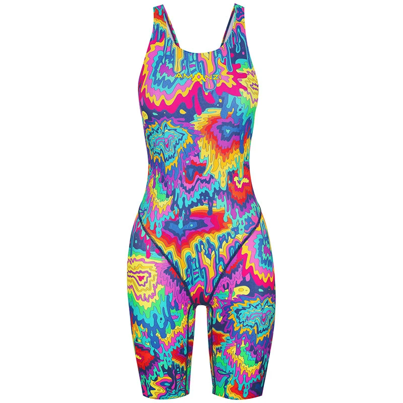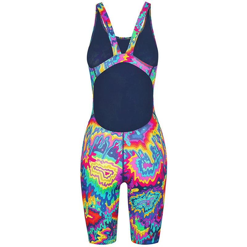 The Euphoria Kneelength is an entry level racing swimsuit that is also suitable for training. The kneelength has been engineered to fit the needs of competitive and active swimmers, as well as triathletes and open water swimmers. The wide shoulder straps and back band are placed between the shoulder blades allowing maximum freedom and ease of movement whilst swimming. They also provide added support to the bust area. The wide open back follows the natural contours of the body providing an ergonomic fit and superior comfort. (AM37299)Â