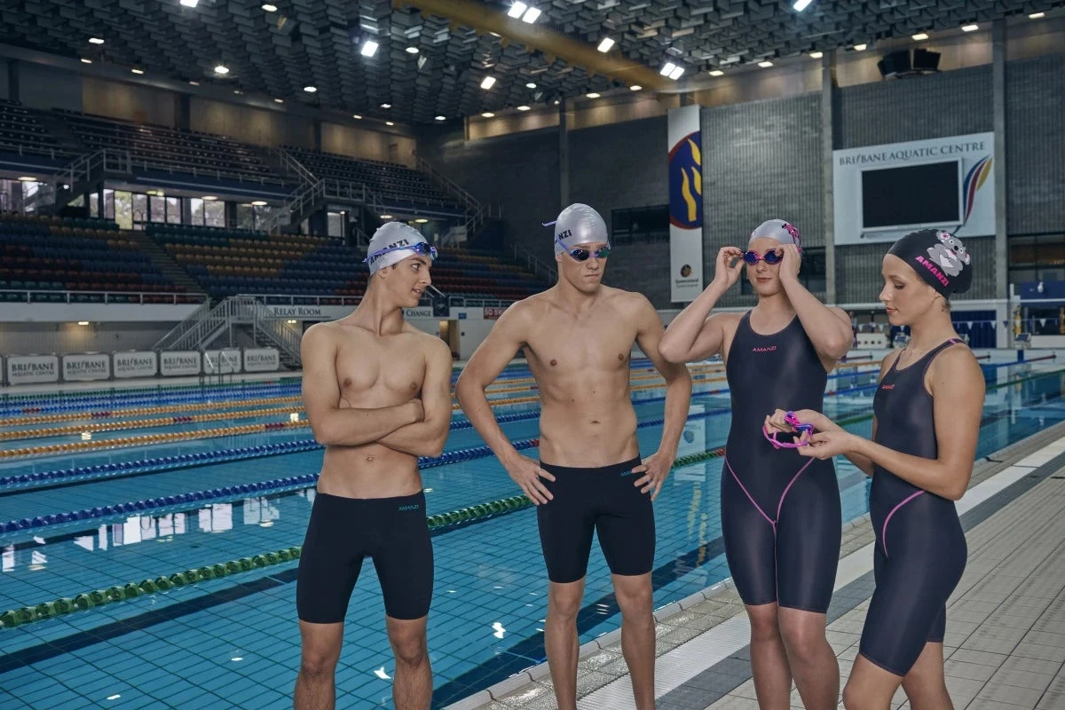 The Amanzi Flamingle Swim Cap features a silver background with 3 proud to be pink flamingos and a pink Amanzi Logo.